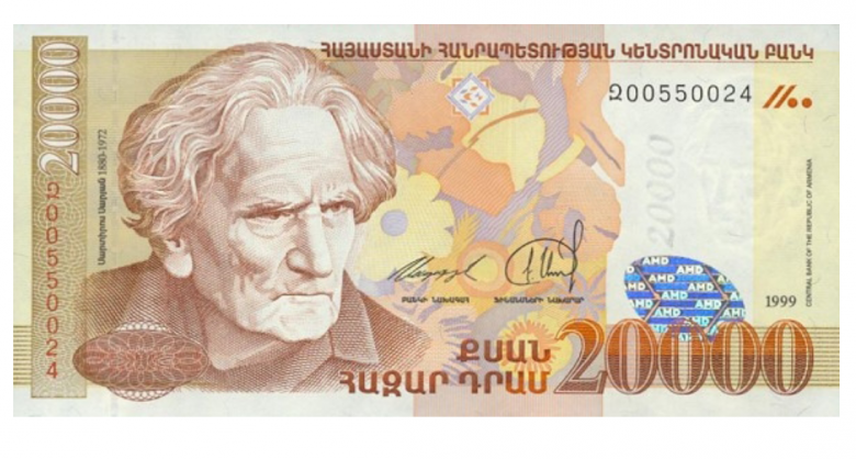 1999, 2007, 2009, 2012 թվականների թողարկման 20000 դրամ (Մարտիրոս Սարյանի դիմապատկերով)