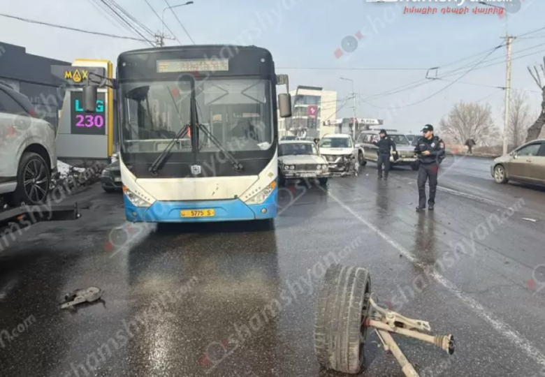 Սեբաստիա փողոցում բшխվել են «Mercedes»-ը, «Nissan Rogue»-ը, «Nissan Bluebird»-ը, «ՎԱԶ 2106»-ը և «Zongtong» մակնիշի ավտոբուսը․ կա վիրшվոր