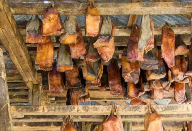 Այդ ուտեստը ծագել է միջնադարյան Իսլանդիայում, երբ սնունդը սակավ էր, և բռնված շնաձկանը դեն նետելը անընդունելի էր։ Աղի սակավության և արագ պահպանման մեթոդների բացակայության պատճառով էլ իսլանդացիները ապավինել են բնական խմորմանը՝ այսինքն նեխմանը և ֆերմենտացմանը։