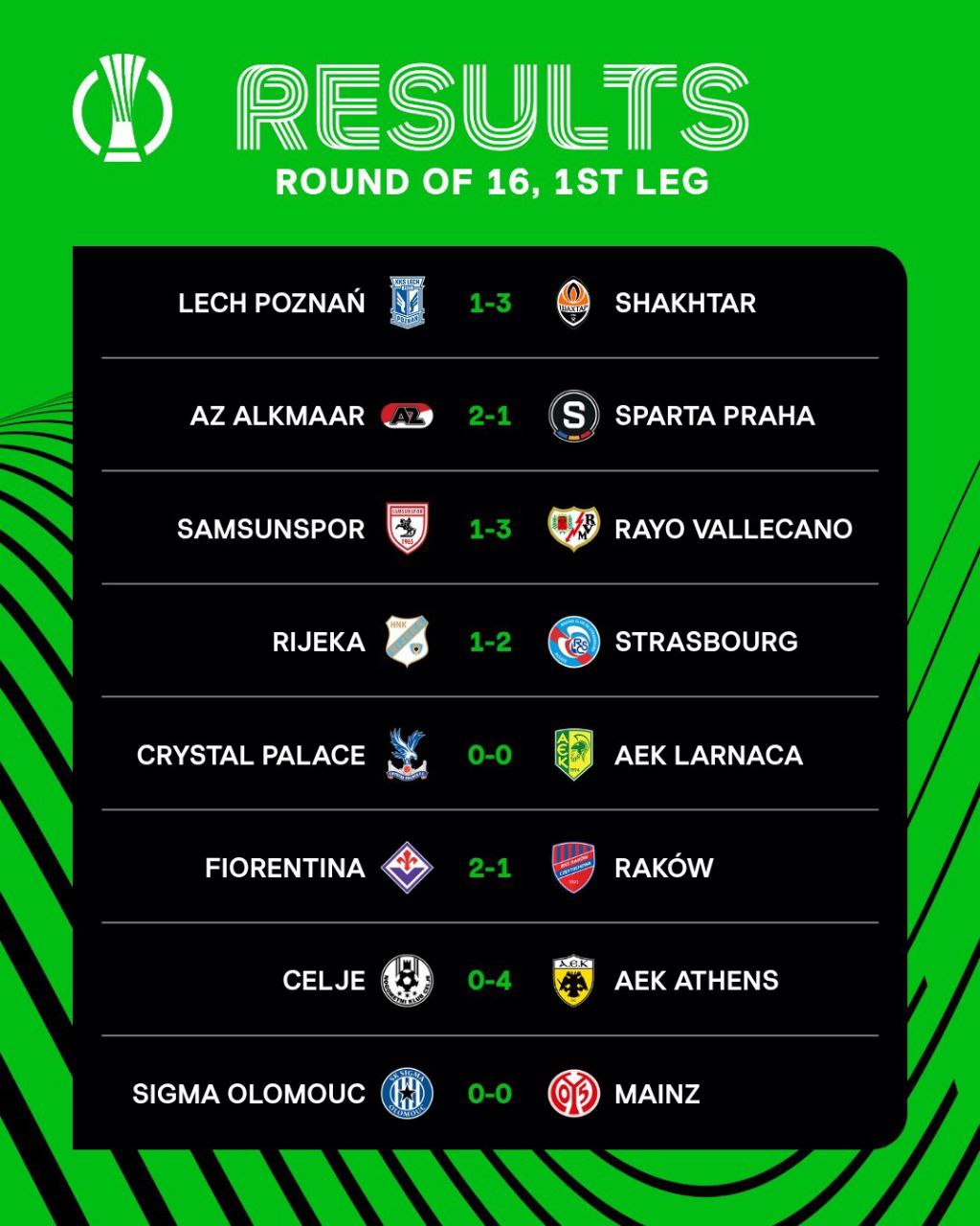 Եվրոպայի և Կոնֆերենցիայի լիգաների 1/8 եզրափակչի առաջին հանդիպումների արդյունքները