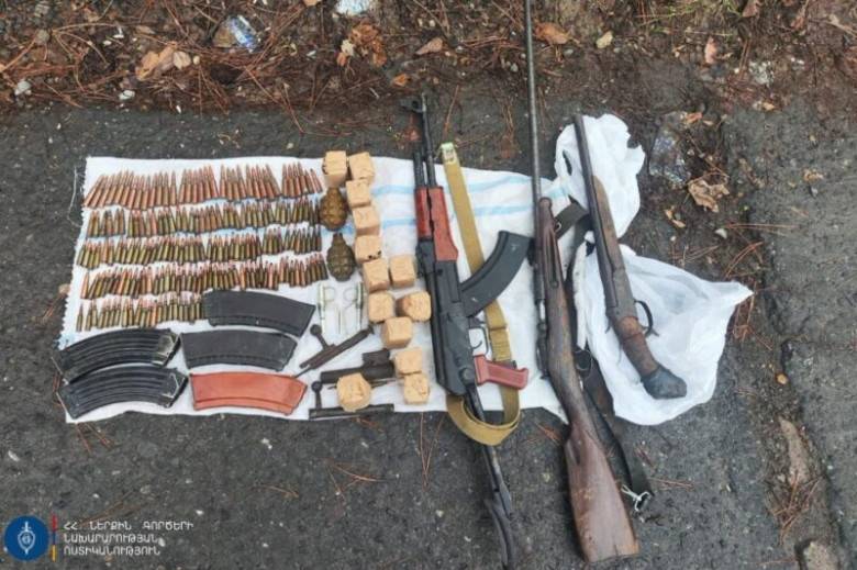 Համայնքային ոստիկանները նշված վայրում հայտնաբերել են «ԱԿՍ» տիպի ինքնաձիգ, որսորդական երկու հրացան, «Ֆ-1» տիպի երկու նռնակ՝ պայթուցիչներով, տարբեր տրամաչափի 391 փամփուշտ և որսորդական հրացանի մասեր։