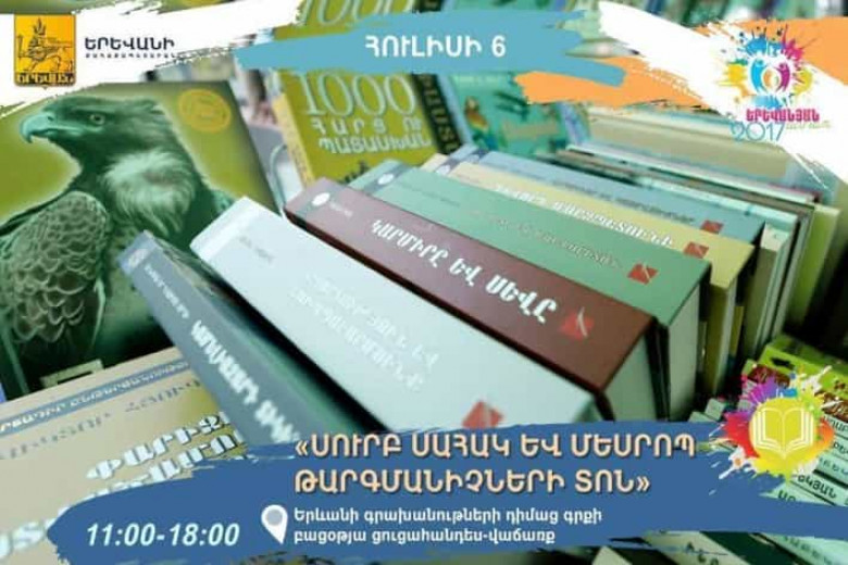 «Երևանյան ամառ 2017» եռամսյա միջոցառումների ծրագրով հուլիսի 6-ին, ժամը 11:00-18:00-ը «Սուրբ Սահակ և Մեսրոպ թարգմանիչների տոն»-ի համատեքստում Երևանի գրախանութների դիմաց կանցկացվի բացօթյա ցուցահանդես վաճառք:
