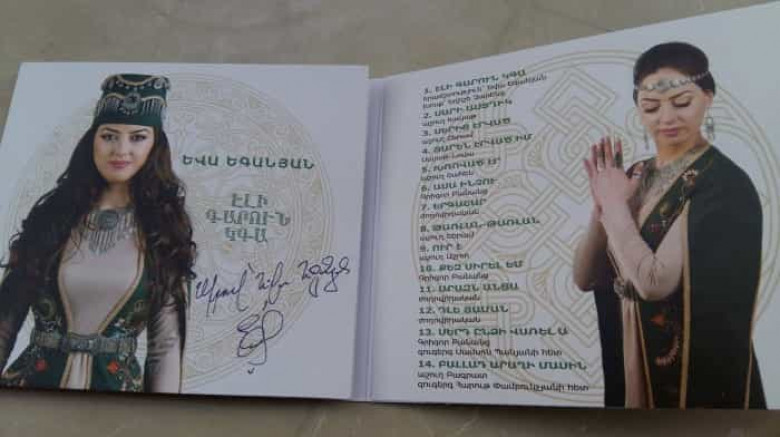 Երեկոյի ավարտին Եվա Եգանյանը ձայնասկավառակներ նվիրեց իր հյուրերին, որոնք էլ իրենց հերթին գովեստի խոսքերով բնութագրեցին երիտասարդ երգչուհուն :