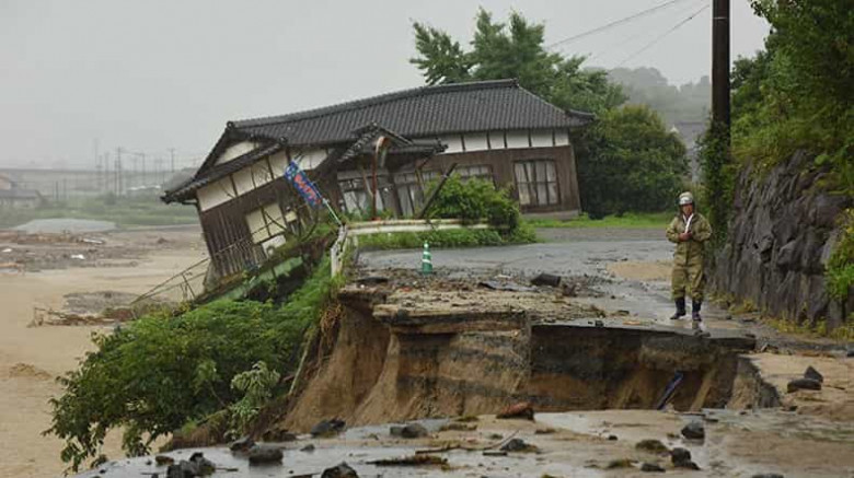Ըստ աղբյուրի՝ անցած շաբաթ հեղեղումների հետևանքով հարավ-արևմտյան հատվածում գտնվող Կյուսյու կղզում սողանքներ են եղել: Տարերային աղետի հետևանքով մահացել է 30 մարդ, մեկ տասնյակ մարդ համարվում է անհետ կորած: