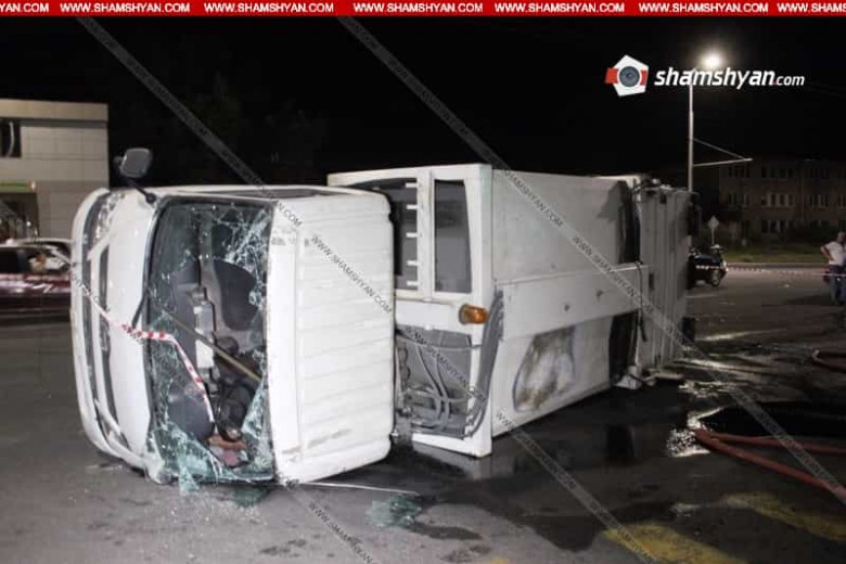 Խոշոր ավտովթար Երևանում. «Վարդանանք » ռեստորանային համալիրի մոտ բախվել են Opel-ն ու «Սանիթեք » ընկերության Hino աղբատարը, ինչի հետևանքով վերջինը կողաշրջվել է. Կան վիրավորներ