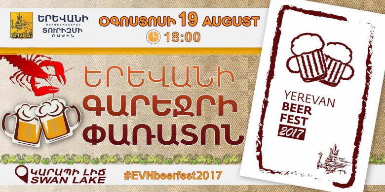 ՀԱՍԱՐԱԿՈՒԹՅՈՒՆԳարեջրի սիրահարներին Երևանի քաղաքապետարանը օգոստոսի 19-ին ժամը 18:00-ին հրավիրում է Կարապի լիճ, մասնակցելու արդեն ավանդական դարձած Երևանի գարեջրի չորրորդ փառատոնին: