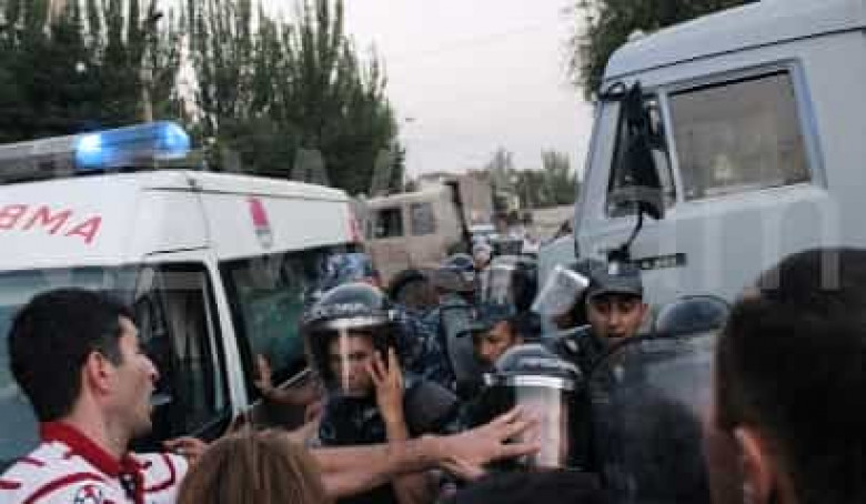 Սակայն նախօրեին բախում է տեղի ունեցել ոստիկանների ու քաղաքացիների միջեւ: Ոստիկանների փոխանցմամբ, Սարի թաղի կողմից քաղաքացիներ են եկել, փորձել են մուտք գործել պահպանվող տարածք։ Նրանք նաեւ քարեր եւ տարբեր առարկաներ են նետել ոստիկանների ուղղությամբ, երեք ոստիկան վիրավորվել: Դեպքի վայր են մեկնել ՀՀ ոստիկանապետի տեղակալներ Սամվել Հովհաննիսյանը եւ Լեւոն Երանոսյանը, ինչպես նաեւ Երեւանի ոստիկանապետ Աշոտ Կարապետյանը: Նրանք հայտնել են, որ բախման հետեւանքով քաղաքացիներ չեն տուժել։