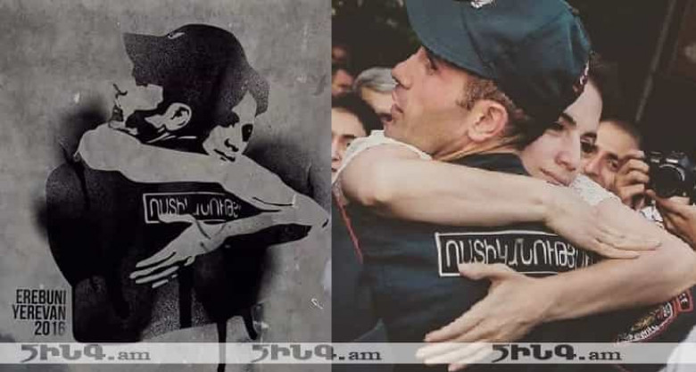 Ինքն էլ ինձ մի ձեռքով գրկեց, քանի որ ազատ չէին ձեռքերը, իրենք շղթա կազմած էին կանգնած: Մի քանի վայրկյան լռությունից հետո մարդիկ սկսեցին ծափահարել: Իրենց ղեկավարներն էլ ոչինչ չասացին: Երբ երկրորդ անգամ գրկեցի նրան, երեւի այդ ընթացքում են արել լուսանկարը: