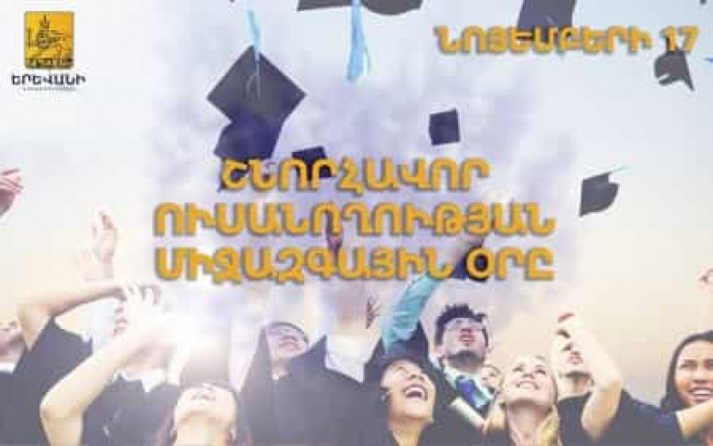 սրտանց շնորհավորում եմ Ուսանողության միջազգային օրվա առթիվ: Բոլոր ժամանակներում էլ ուսանողությունը համարվել է առաջընթացի, տնտեսական և գիտատեխնիկական զարգացման, կրթական և գիտական ներուժի հզորացման գրավական: