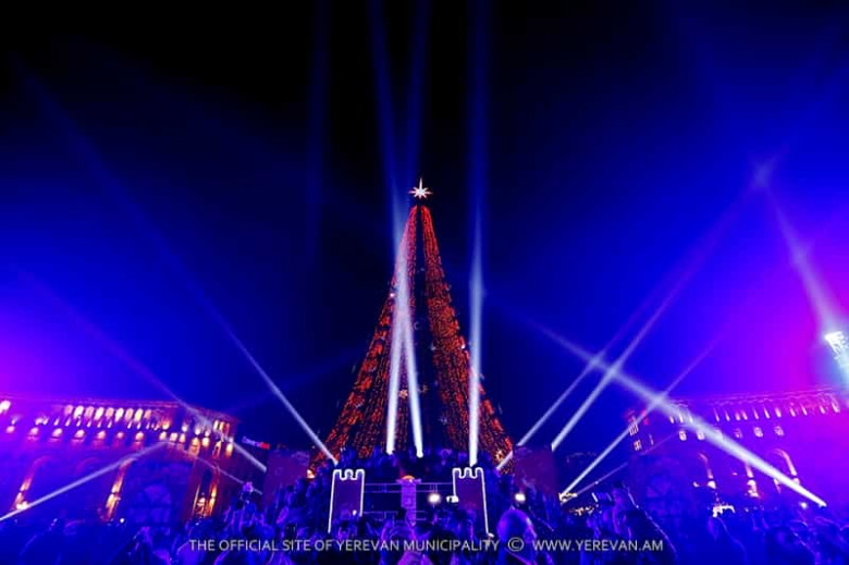 ՀԱՍԱՐԱԿՈՒԹՅՈՒՆԴեկտեմբերի 19-ի երեկոյան, հանրապետության գլխավոր տոնածառի լույսերի միացմամբ, տրվել է մայրաքաղաքում ամանորյա տոնական միջոցառումների մեկնարկը: Գլխավոր տոնածառի և մայրաքաղաքի արտաքին տոնական լուսավորության խորհրդանշական միացումը կատարել են Երևանի քաղաքապետ Տարոն Մարգարյանը և մայրաքաղաքի երաժշտական ու արվեստի դպրոցների միջազգային և հանրապետական մրցույթներում բազմաթիվ գրան-պրիներ և մրցանակներ ստացած սաները, միջազգային տարբեր օլիմպիադաներում հաղթած աշակերտներն ու ամենատարբեր մրցումներում և առաջնություններում առաջին մրցանակային հորիզոնականը գրաված պատանի մարզիկները: 32մ բարձրությամբ և շուրջ 8000 լուսադիոդային լամպերով և 400 խաղալիքներով զարդարված տոնածառի լույսերի միացմանը զուգահեռ՝ լուսավորվել են նաև մայրաքաղաքի բոլոր վարչական շրջանների տոնածառերը, գործարկվել են գլխավոր ու երկրորդական փողոցներում տեղադրված տոնական լուսավորության համակարգերն ու մայրաքաղաքի լուսադիոդային տոնական զարդարանքները, այդ թվում նաև՝ շատրվանները: Տոնական լույսերի միացումն ուղեկցվել է պարային տարբեր խմբերի և երգչախմբերի մասնակցությամբ տոնական համերգով ու ավարտվել հրավառությամբ: