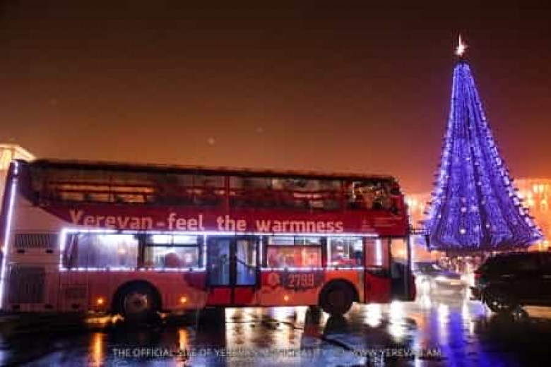 Տոնական ավտոբուսը հրաշալի հնարավորություն է շրջելու ամանորյա Երևանի փողոցներում և տեսնելու մայրաքաղաքի գեղեցիկ լուսավորված և զարդարված տեսարժան վայրերը: