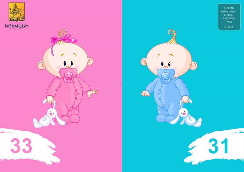 Երևանի քաղաքապետարանի աշխատակազմի առողջապահության վարչությունից հայտնում են, որ հունվարի 11-ին մայրաքաղաքում ծնվել է 64 երեխա՝ 33 աղջիկ, 31 տղա:
