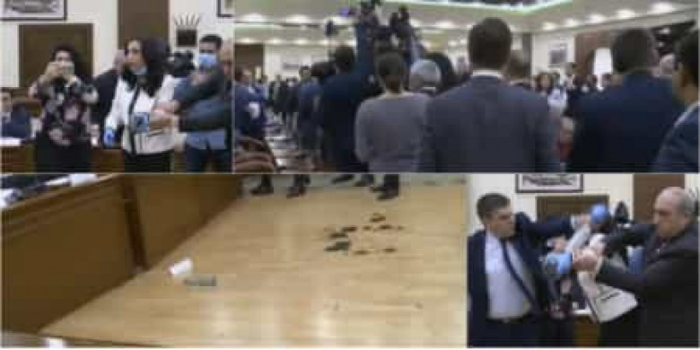 «Երկիր ծիրանի» ավագանու անդամների և Հանրապետական խմբակցության անդամներ միջև ծեծկռտուք սկսվեց: Նիստն ընդմիջվեց, ժամանեցին ոստիկանության աշխատակիցներ՝ փորձելով դուրս բերել «Երկիր ծիրանի»-ի անդամներին: