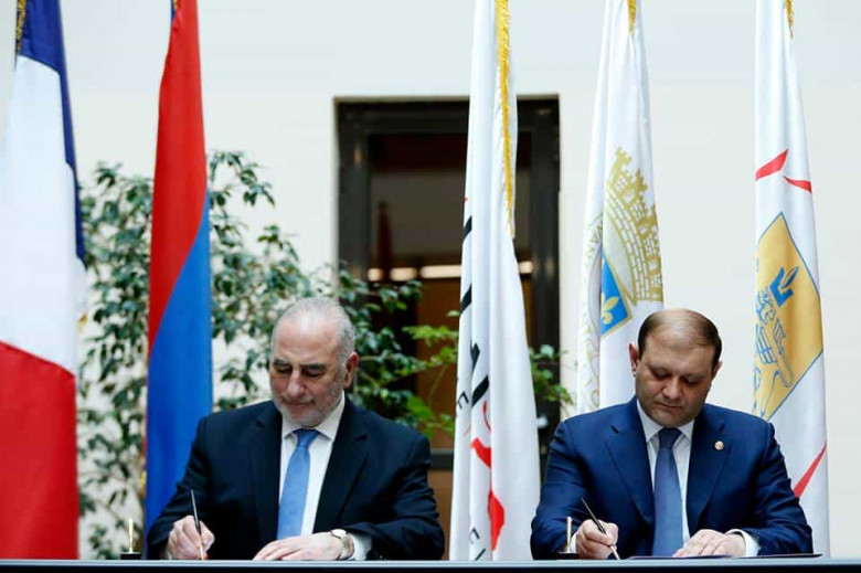 Պաշտոնական այցով Երևան ժամանած Լիոն քաղաքի քաղաքապետ, իմ լավ գործընկեր ու բարեկամ Ժորժ Կեպենեկյանի հետ այսօր ստորագրեցինք հուշագիր, որով նախանշեցինք այն հիմնական գերակա ուղղությունները, որոնցով կխորացնենք երկու քաղաքների համագործակցությունը: Հուշագրում ներառել ենք մասնավորապես մշակույթի, առողջապահության, կրթության, տուրիզմի, տրանսպորտի և քաղաքային լուսավորության, ինչպես նաև կառավարման նորարարական տեխնոլոգիաների՝ Խելացի քաղաքի և գործարար կապերի զարգացման ու ընդլայնման ուղղություններով համագործակցության խորացումը: Հաշվի առնելով երկուստեք հարաբերությունների զարգացման դրական դինամիկան ու առկա ներուժը, համոզված եմ, որ նախանշված բոլոր ուղղություններով ևս կարձանագրենք լուրջ հաջողություններ: