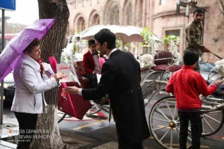 Մայրաքաղաքի կենտրոնական հատվածներով շրջող ձիակառքի ասպետի կողմից անցորդ կանայք ու աղջիկները ծաղիկներ և շնորհավորական բացիկներ են ստացել: