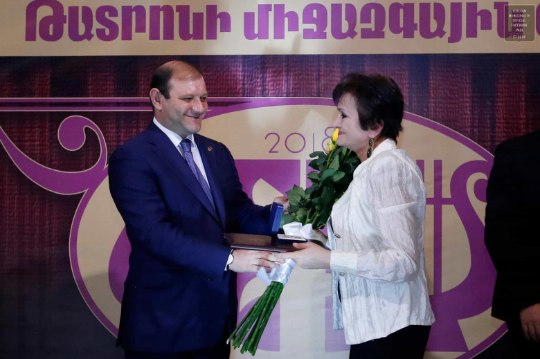 Թատրոնի միջազգային օրվա առթիվ Երևան քաղաքի թատերարվեստի ոլորտում գեղարվեստական արժեքների ստեղծման և տարածման համար Հենրիկ Մալյանի անվան կինոդերասանի թատրոնի դերասանուհի Վարդուհի Ռուշանյանը, Երգի պետական թատրոնի արտաքին կապերի պատասխանատու, երգահան Անիտա Հախվերդյանը, Երևանի պատանի հանդիսատեսի թատրոնի գլխավոր նկարիչ Անտոն Քեշիշյանը և Ալ. Սպենդիարյանի անվան օպերայի և բալետի ազգային ակադեմիական թատրոնի դիրիժոր Հարություն Արզումանյանն էլ պարգևատրվել են «Երևան քաղաքի մշակույթի պատվավոր գործիչ» մեդալով: