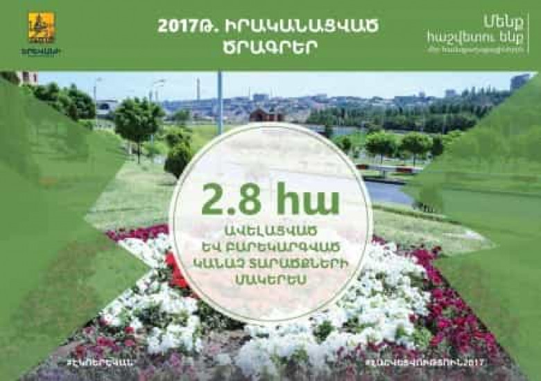 2017թ. մայրաքաղաքում ավելացված և բարեկարգված կանաչ տարածքների մակերեսը կազմել է 2.8 հա