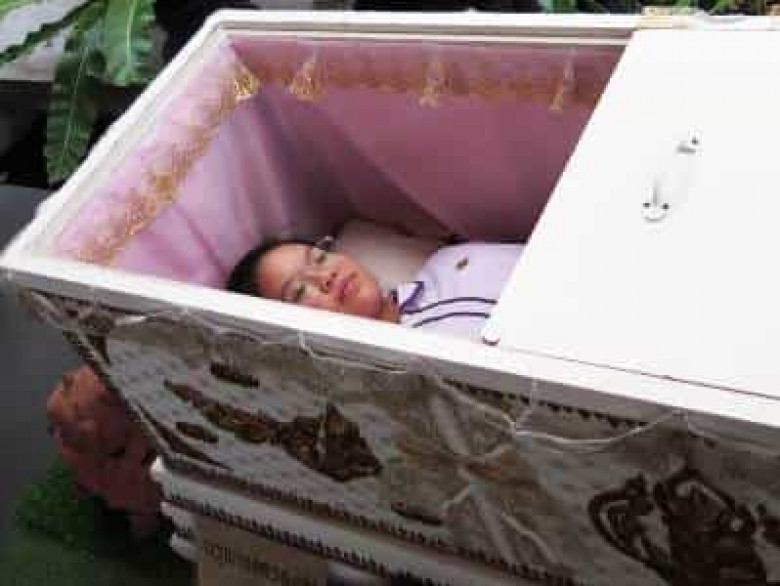 Բանգկոկում The Kid Mai Death Cafe-ի սեփականատերը զեղչեր կամ անվճար խմիչք է առաջարկում բոլոր նրանց, ովքեր կհամաձայնեն վերապրել մահվան գիտակցման փորձը եւ պառկել դագաղի մեջ, հայտնում է «ՌԻԱ Նովոստի»-ն՝ վկայակոչելով CNN-ը: