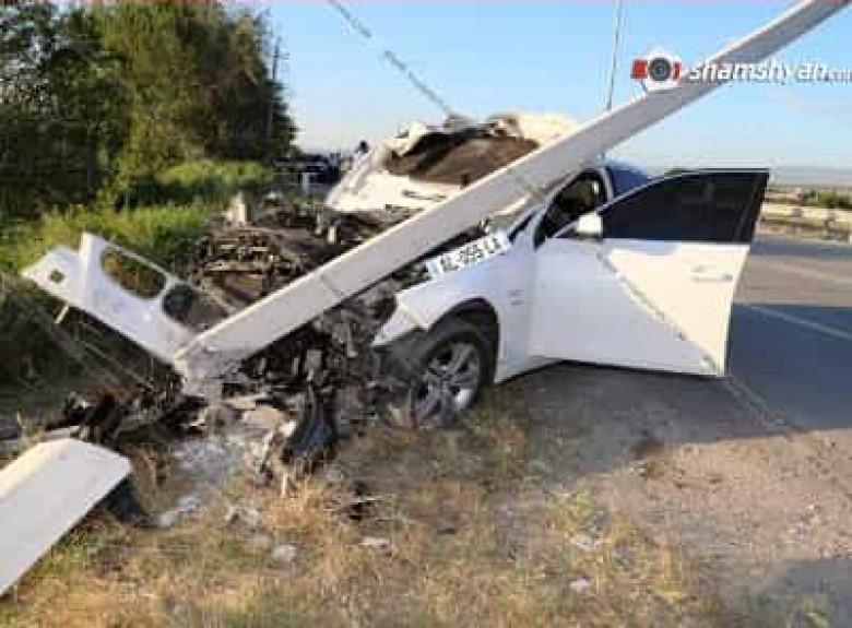 Խոշոր վթար Արարատում. Բախումից հետո BMW-ն տապալել է բետոնե էլեկտրասյունը. կան վիրավորներ (ֆոտո)