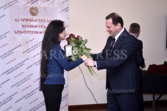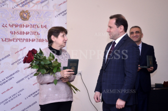 ՀԱՍԱՐԱԿՈՒԹՅՈՒՆՆոյեմբերի 12-ին ՀՀ կրթության և գիտության նախարարությունում ամփոփվել են «Տարվա լավագույն ուսուցիչ», «Տարվա լավագույն դաստիարակ» և «Տարվա լավագույն տնօրեն» ամենամյա մրցույթների արդյունքները։ Ինչպես տեղեկացրին ՀՀ պաշտպանության նախարարության տեղեկատվության և հասարակայնության հետ կապերի վարչությունից, մրցանակակիրներն արժանացել են դրամական պարգևների։