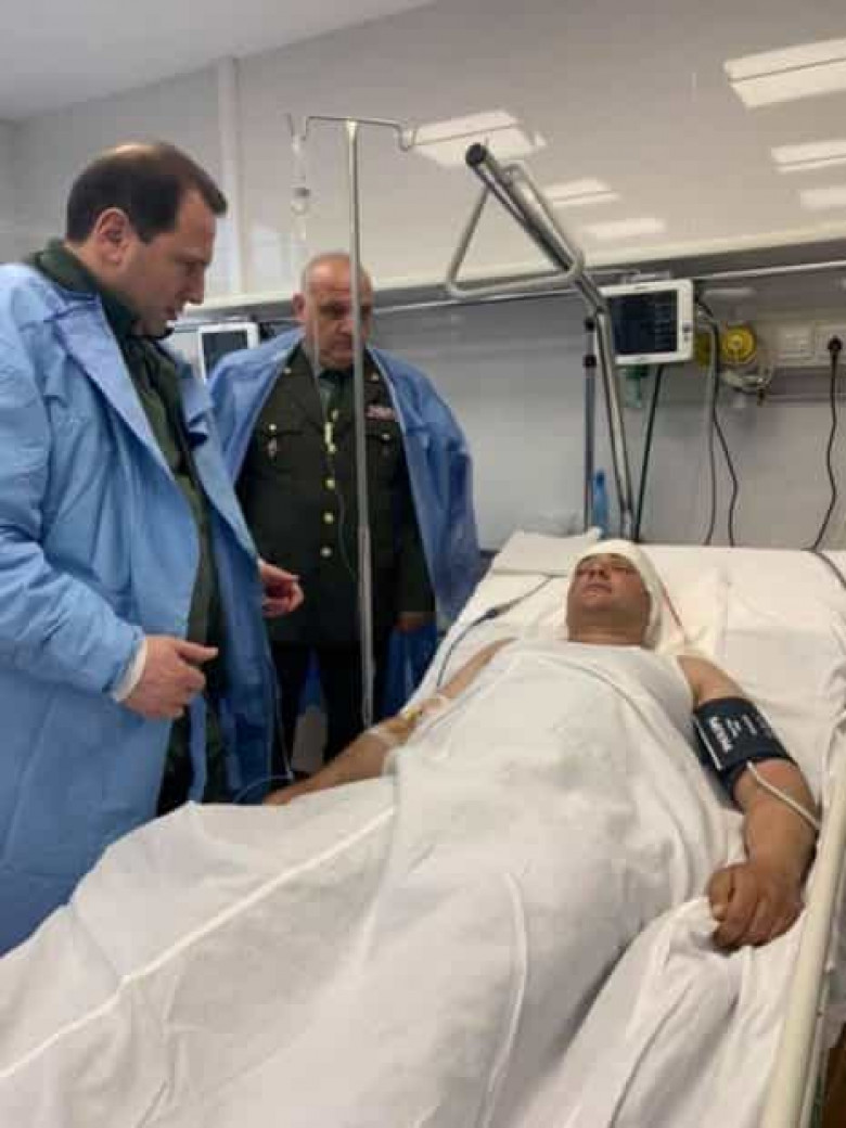 Դավիթ Տոնոյանը հոսպիտալում տեսակցել է գլխի շրջանում վիրավորում ստացած զինծառայողին (ֆոտո)