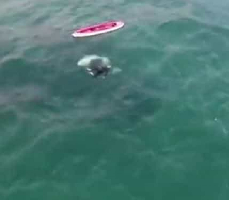 Համարձակ տղամարդը լողում է կետի հետ. Տեսանյութ
