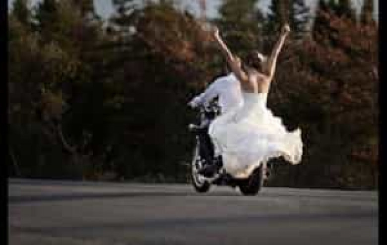 Հարսի անհավանական հնարքները մոտոցիկլետով սեփական հարսանիքի ժամանակ (տեսանյութ)