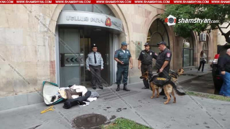 Արտակարգ իրավիճակների նախարարության փրկարար ծառայության և ոստիկանության Երևան քաղաքի վարչության օպերատիվ կառավարման կենտրոններ ահազանգ է ստացվել, որ բանկի դիմաց՝ գլխավոր մոտքի մոտ, կասկածելի ճամպրուկ կա: Օպերատիվորեն ժամանել են նաև ԱԻՆ-ի ներկայացուցիչներ, սակրավորներ, կինոլոգներ: