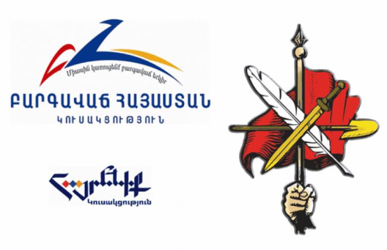 Ավելի գունառատ պատկեր է ընդդիմադիր դաշտը։ Այստեղ գործող կուսակցություններին խիստ պայմանականորեն կարելի է բաժանել 3-4 խմբի։ Մի խմբում, այսպես կոչված, նախկիններն են՝ ՀՀԿ-ն Սերժ Սարգսյանի գլխավորությամբ, Ռոբերտ Քոչարյանն իր աջակիցներով, եռյակ միությունը՝ ՀՅԴ-ԲՀԿ և նորաստեղծ «Հայրենիքը»։ Այս իրականության հետ մեկտեղ՝ սև-սպիտակի տրամաբանությունից դուրս ձևավորվել է կուսակցությունների մի փունջ, որոնք այս կամ այն կերպ մասնակցել, կամ օժանդակել են իշխանափոխությանը, սակայն երկու տարի անց քննադատում են իշխանություններին այն բանի համար, որ «հեղափոխոխությունը խցանվել է», «հեղափոխական գաղափարները չեն իրագործվում», «իշխանությունը քաղաքական կամք, ցանկություն կամ զորություն չունի այդ փոփոխությունները կյանքի կոչելու»։ Այս խմբում «տեղավորվում» են ՀԱԿ-ը, «Ժառանգությունը», «Սասնա Ծռերը» և վերջինիս առանցքի շուրջ ձևավորված «Ազգային ժողովրդավարական բևեռը»։
