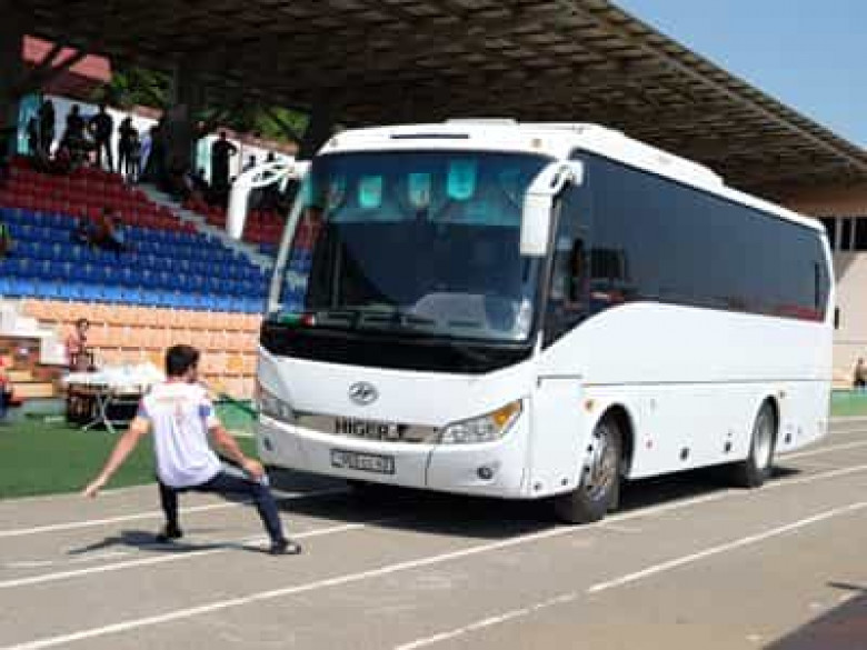 Իսկ Արթուր Սաքունցին հաջողվեց ատամներով քաշելով տեղից շարժել 12տ. քաշ ունեցող ավտոբուսը: