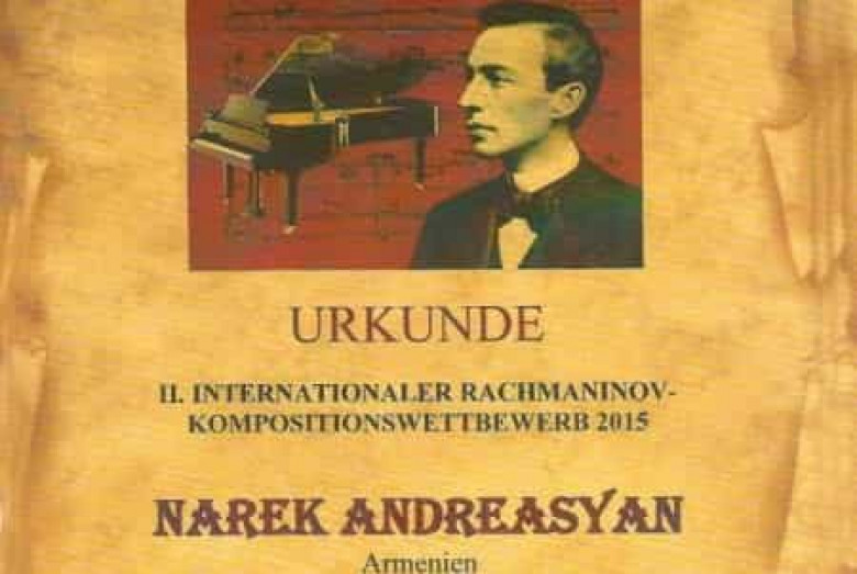 Նարեկ Անդրեասյանի համար Ռախմանինովի անվան մրցույթն առաջին միջազգային ստուգատեսն էր: Պատանի կոմպոզիտորի կոմպոզիցիայի ուսուցիչը Դավիթ Բալասանյանն է: