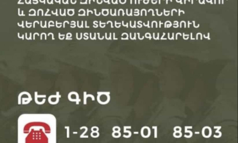 ԹԵԺ ԳԻԾ. զինծառայողների վերաբերյալ տեղեկություն ստանալու համար