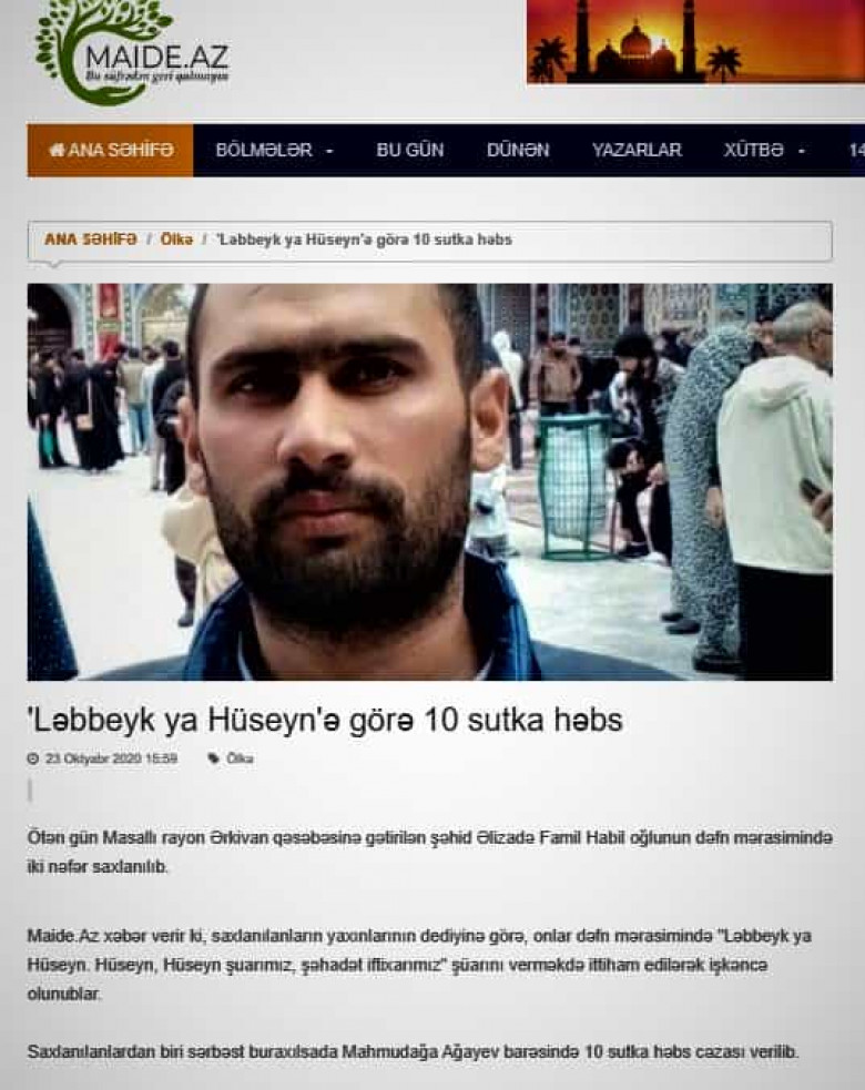 Շիայական զգացմունքները հատկապես երկրի թալիշաբնակ շրջաններում Բաքվի բռնապետի համար հասել են այնպիսի վտանգավոր աստիճանի, որ ձերբակալվում են մարդիկ, որոնք պատերազմում սպանվածների թաղման արարողության ժամանակ لبیک یا حسین [labbayk yā Husayn] «Հնազանդվում ենք քո հրամանին, ո՜վ, Հուսեյն» (ծան․՝ Հուսեյնը շիա մահմեդականների՝ Քարբալայում նահատակված երրորդ իմամն է) հայտնի շիայական կոչն են հնչեցնում։