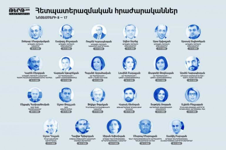 Մեկ տասնյակից ավելի հրաժարականներ Նիկոլ Փաշինյանի կողմից զինադադարի հայտարարության ստորագրումից հետո