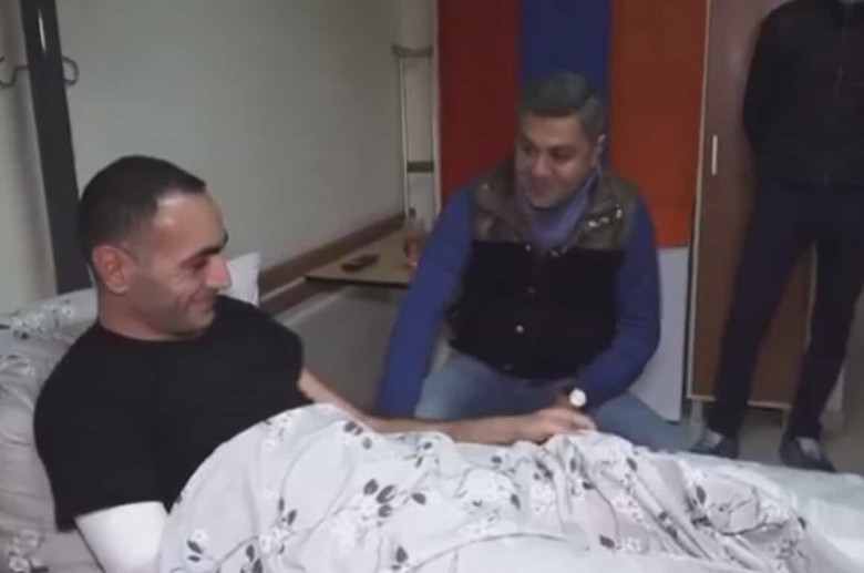 «Հայրենիք» կուսակցության նախագահ, գեներալ-մայոր Արթուր Վանեցյանը հիվանդանոցում տեսակցել է «Հայրենիք» զորախմբի վիրավոր մարտընկերոջը՝ Արթուր Նազարյանին (տեսանյութ)