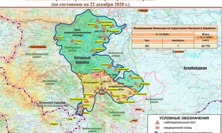 Ռուսաստանի պաշտպանության նախարարությունը ներկայացրել է նոր տվյալներ Լեռնային Ղարաբաղի հակամարտության գոտում ռուս խաղաղապահների տեղակայման վերաբերյալ: Խաղաղապահ գործողության տարածքում իրավիճակը՝ ինֆոգրաֆիկայում:
