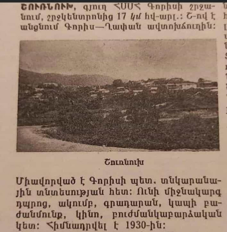Համացանցում տարածվում է «Սովետական Հայաստան» թերթի լուսապատճենը, որում նշված է, որ Շուռնուխ գյուղը Սովետական Հայաստանի Գորիսի շրջանում է
