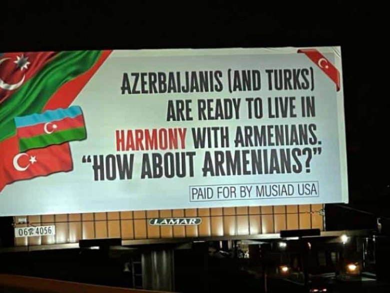 Twitter-ի հայազգի օգտատերերը հայտնում են, որ Փենսիլվանիա նահանգի Ֆիլադելֆիա քաղաքում մեծ վահանակ է տեղադրվել, որի վրա գրված է. «Ադրբեջանցիները (և թուրքերը) պատրաստ են հայերի հետ ապրել ներդաշնակության մեջ: Իսկ պատրա՞ստ են արդյոք հայերը»: