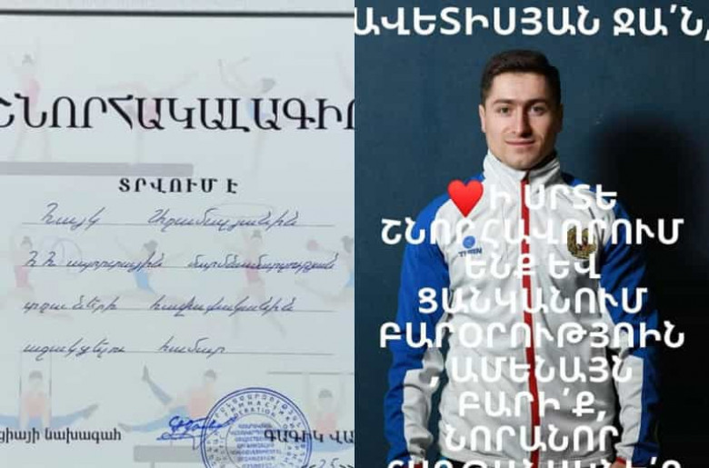 «Այսօր առավոտյան գեղեցիկ նվեր ստացա շատ շնորհալի մարզիկ ԱՐԹՈՒՐ ԱՎԵՏԻՍՅԱՆԻ կողմից։