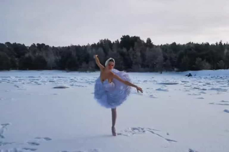Ռուս բալետի պարուհին Չայկովսկիի բալետից հատված է կատարել սառցաշերտի վրա՝ 15 աստիճան ցրտի պայմաններում (տեսանյութ)