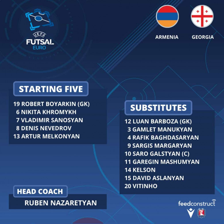 Հայտնի է ֆուտզալի Հայաստանի ազգային հավաքականի մեկնարկային կազմը վրացիների դեմ Եվրո-2022-ի ընտրական մրցաշարի չորրորդ տուրի խաղում: