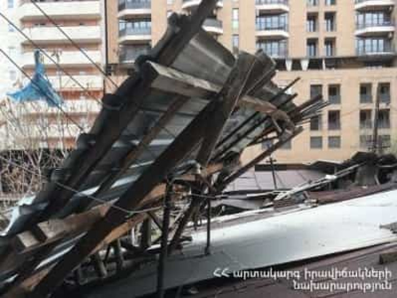 Քամու հետևանքով վնասվել են շենքի թիթեղներ, ծառեր, գովազդային վահանակներ