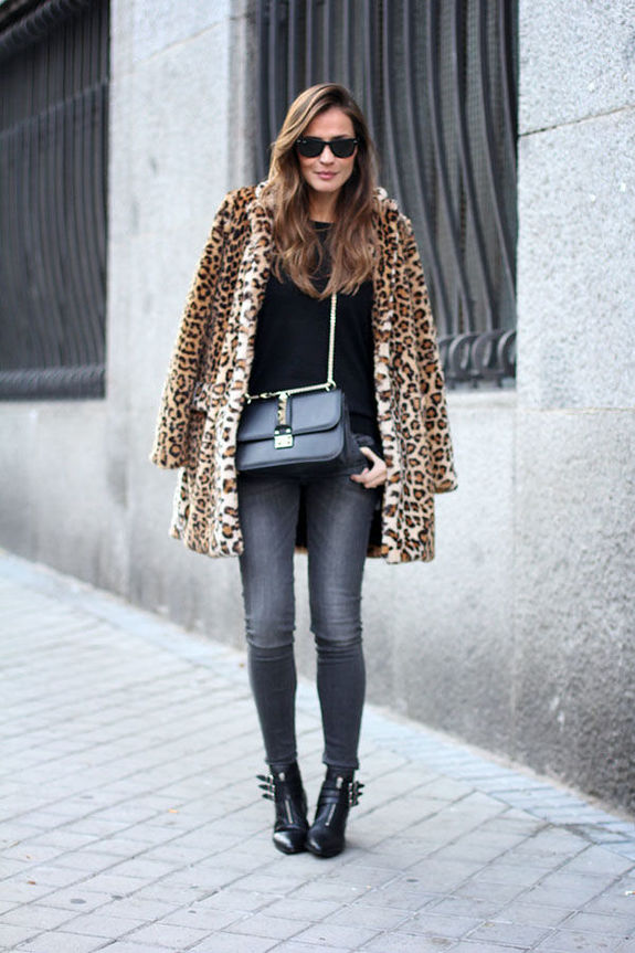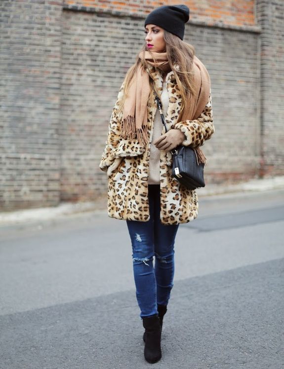 1. Վերարկու` կենդանական նախշերով: Այն կարելի է կրել միագույն կամ բարձր օձիքով սվիտերի, բեժ գույնի տաբատների, նեղ ջինսերի, ոչ բարձրակրունկ երկարաճիտ կոշիկների, կիսաճտկավոր բարձրակրունկ կոշիկների հետ: