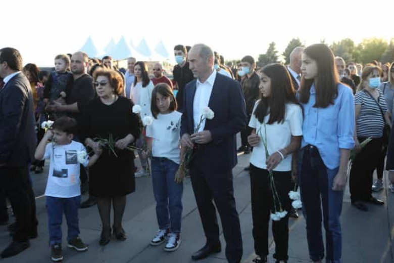 Ռոբերտ Քոչարյանը կնոջ և թոռների հետ այցելել է Ծիծեռնակաբերդի հուշահամալիր (լուսանկարներ)