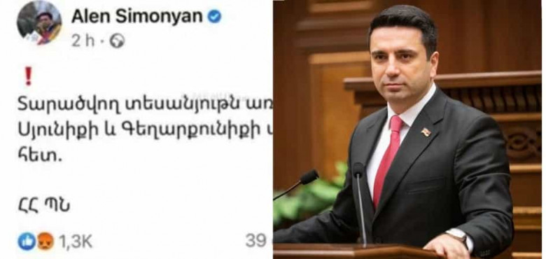 Ալեն Սիմոնյանը ջնջել է իր գրառումը
