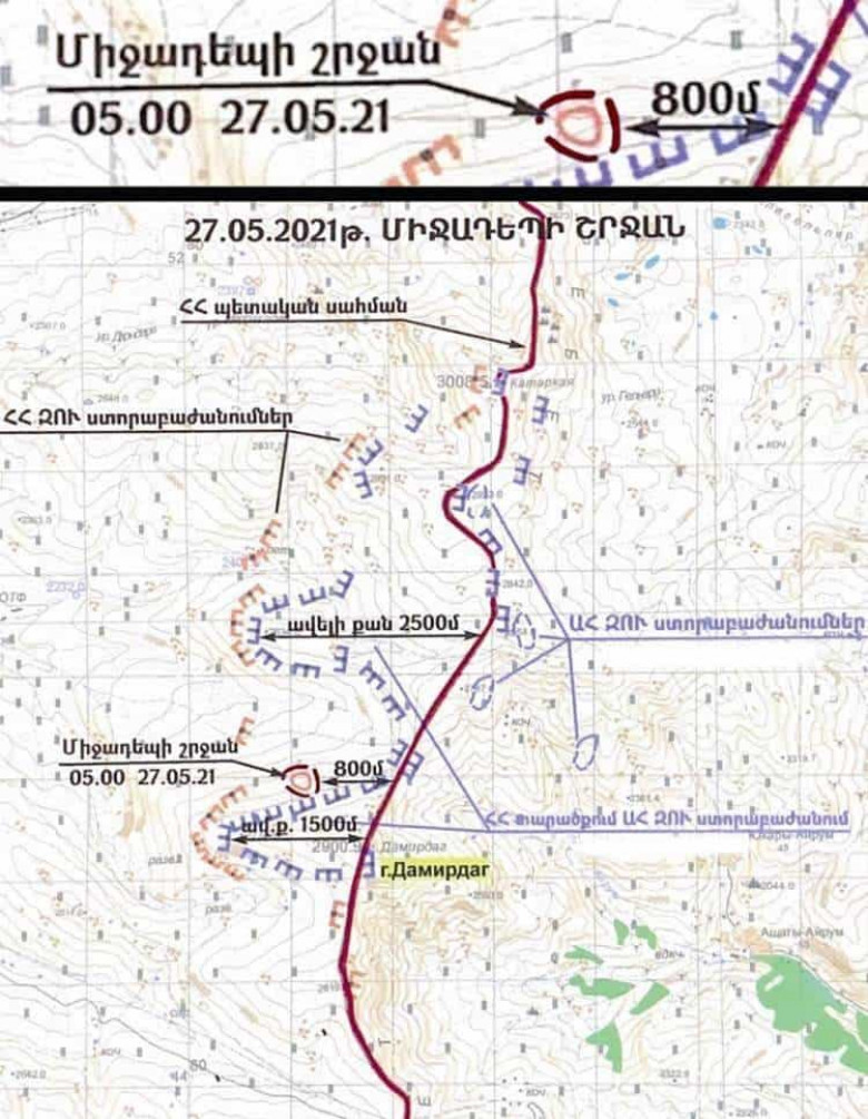 Մենք տեղեկացանք, որ չեղարկվել է ռուս խաղաղապահների հրամանատար գեներալ Մուրադովի նախապես պլանավորված թռիչքը Մոսկվա, նրան հանձնարարված է մնալ Երեւանում եւ հետեւել հետագա զարգացումներին: Բայց ռուս խաղաղապահներին հրահանգված է չմիջամտել, քանի դեռ ընդհարումները տեղի են ունենում, այսպես կոչված, «վիճելի տարածքներում»։ Եվ ռուս-ադրբեջանական կողմերի ձեռքին առկա է քարտեզ, որի հիման վրա տեղի է ունենալու սահմանների դեմարկացիան: