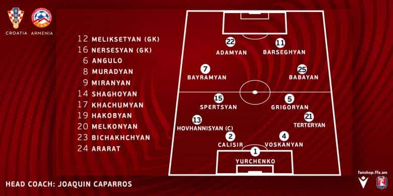 Հայաստանի հավաքականի մեկնարկային կազմը Խորվաթիայի դեմ խաղում