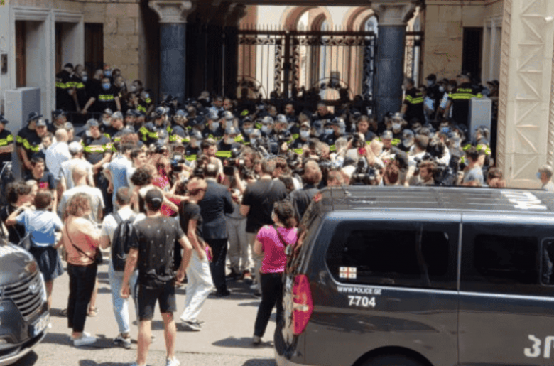 Հայտնի է, որ այսօր լրագրողներն ու ընդդիմադիրները ներխուժել են Վրաստանի խորհրդարանի նիստերի դահլիճ: Խորհրդարանի խոսնակի տեղն են զբաղեցրել ընդդիմության ներկայացուցիչներ Թինաթին Բոկուչավան, Ելենա Խոշտարիան, Լելա Կեբուրիան, Խաթունա Սամնիձեն, Անա Նացվլշվիլին, որոնք ամբիոնից կախել են Վրաստանի և Եվրամիության դրոշները: Նրանք ամբիոնից պահանջում են կառավարության հրաժարականը: Անվտանգության աշխատողները փորձում են ընդդիմադիրների մի մասին դուրս հանել դահլիճից: Խորհրդարանի լիագումար նիստը տապալվել է: