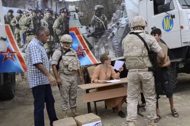 Մարդասիրական ակցիայի շրջանակներում Ռուսաստանի խաղաղապահ զորակազմի մարդասիրական արձագանքման կենտրոնի սպաները, հասարակական կազմակերպության ներկայացուցչի հետ, տեղացիներին նվիրել են ապուրների հավաքածուներ և խոհանոցային պարագաներ: