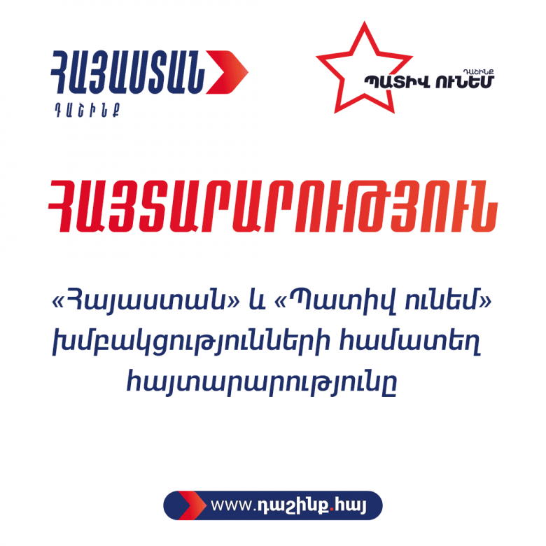 «Հայաստան» և «Պատիվ ունեմ» խմբակցությունները համատեղ հայտարարություն են տարածել